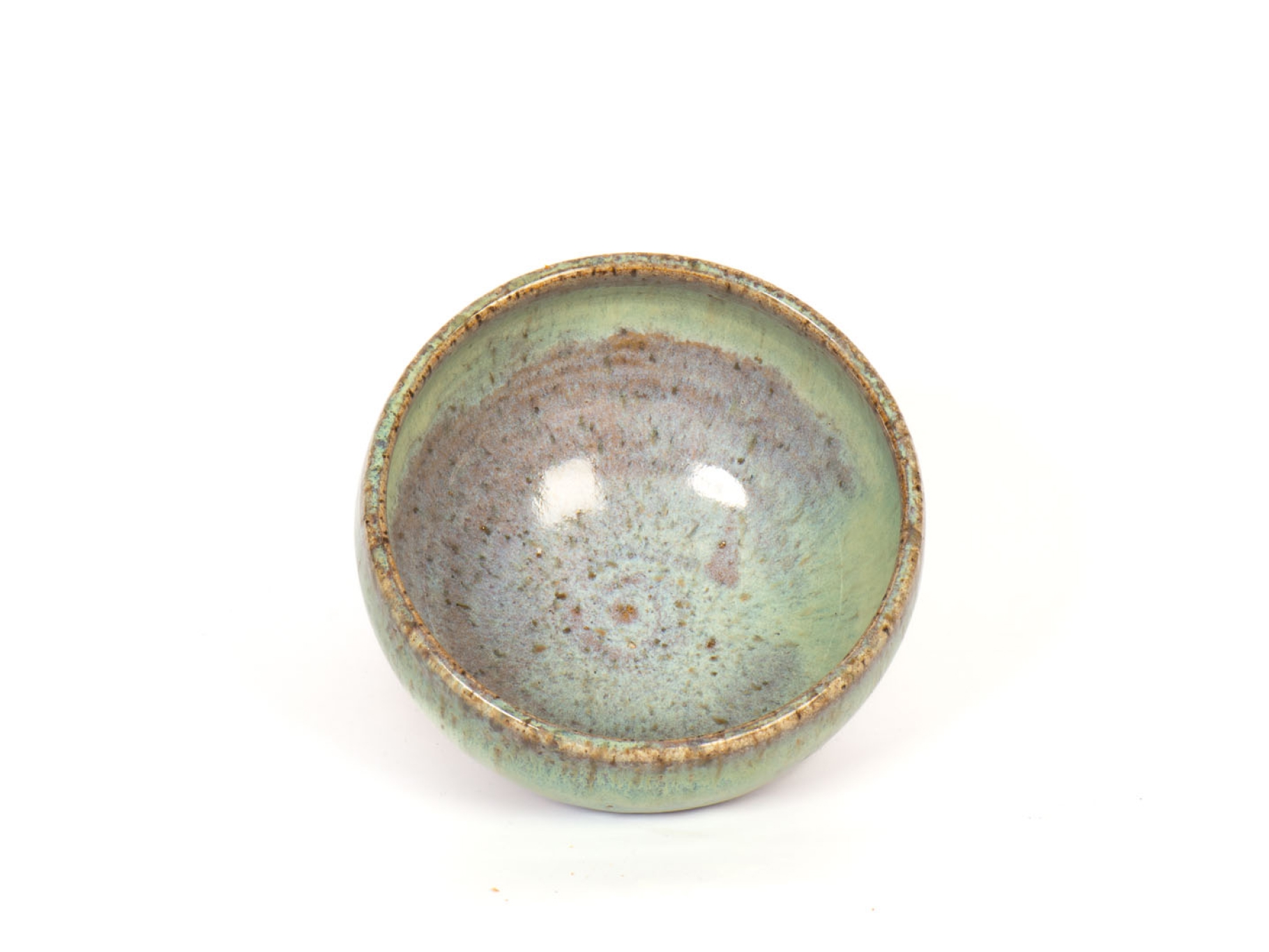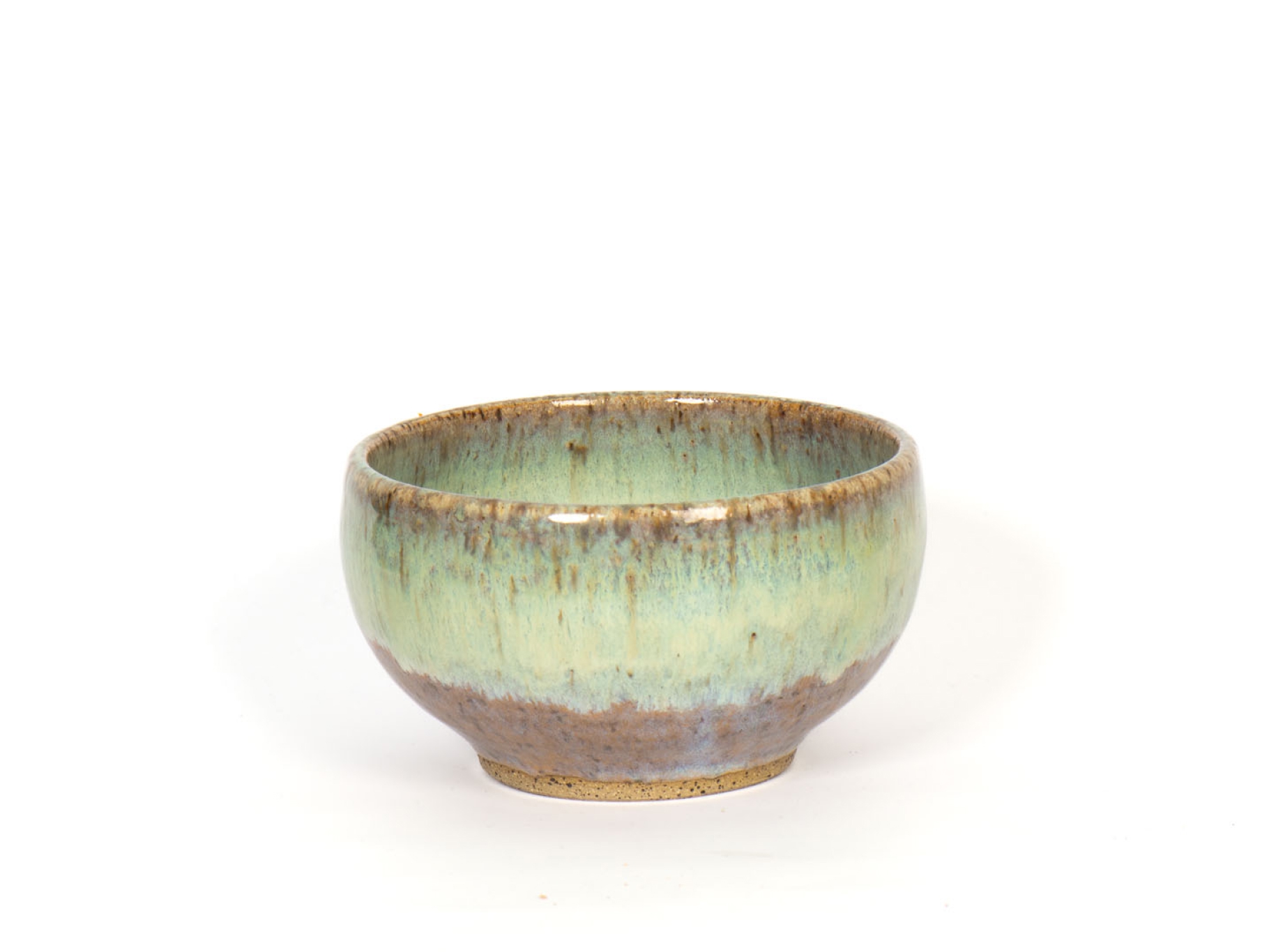 A small wheel thrown bowl for ice cream, snacks, rice, etc. Decorated in a glacial green and blue glaze.