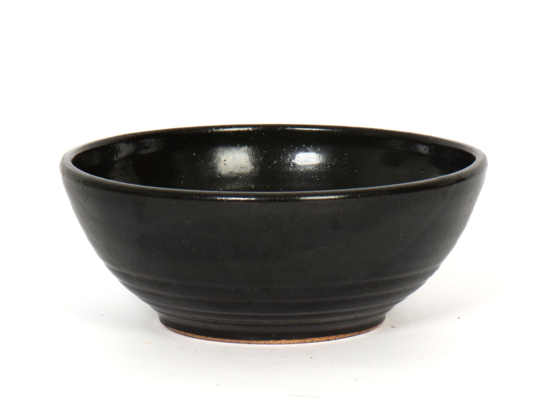 A medium wheel thrown bowl perfect for entrees. Dipped in a black glaze, with carvings decorating the outside providing a tactile experience and visual interest.