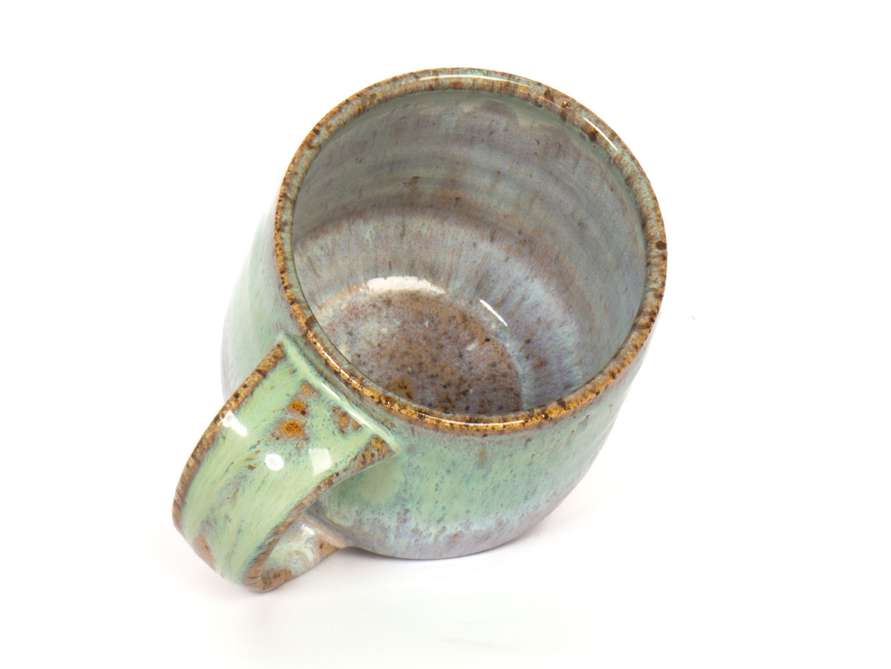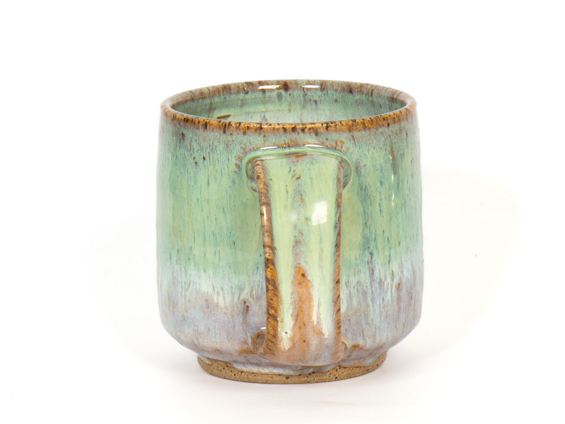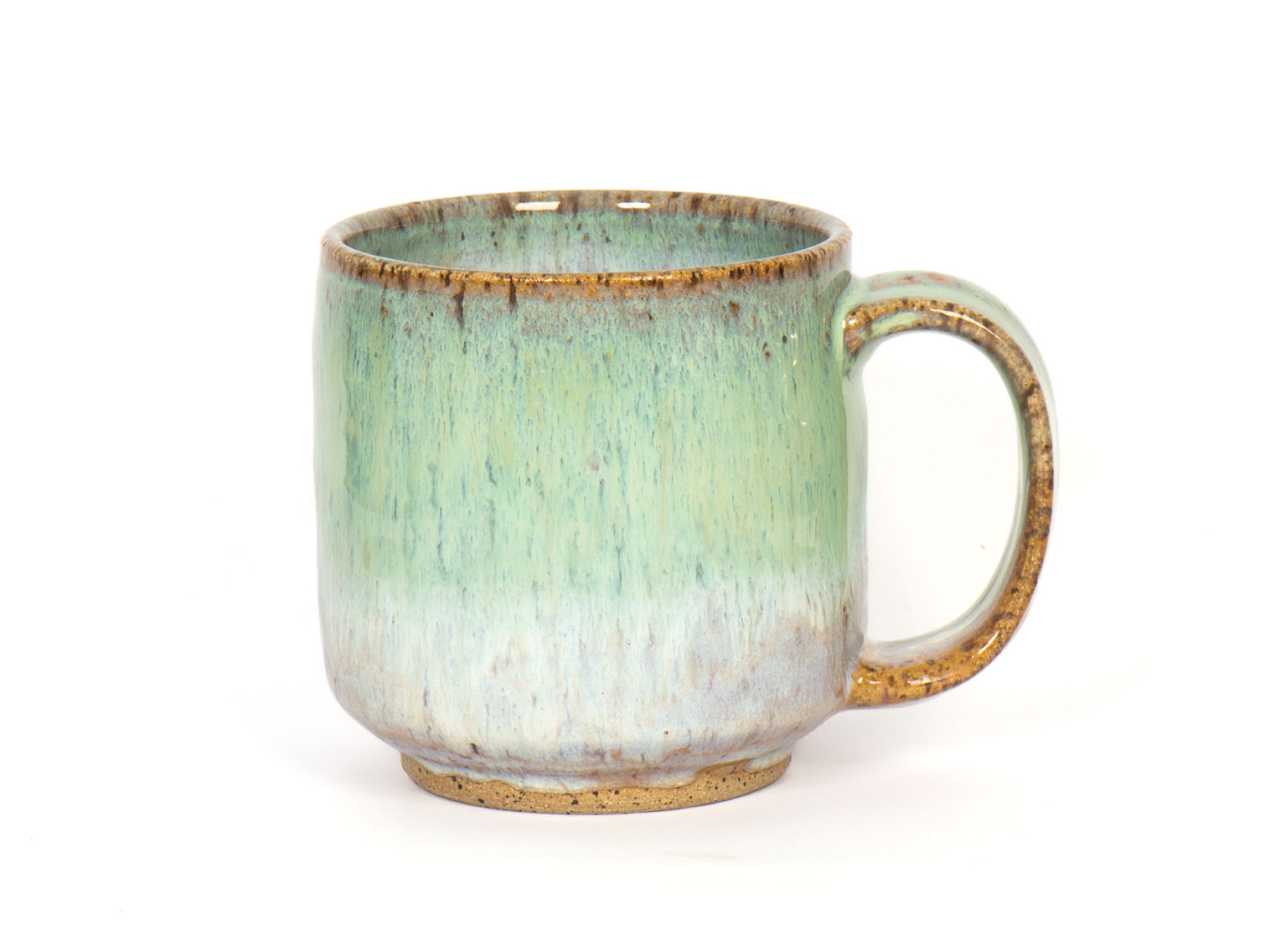 An ample wheel-thrown mug designed for coffee and tea lovers alike. The wide barreled body and thick handle give the form a distinctive silhouette while maintaining a comfortable grip in hand.