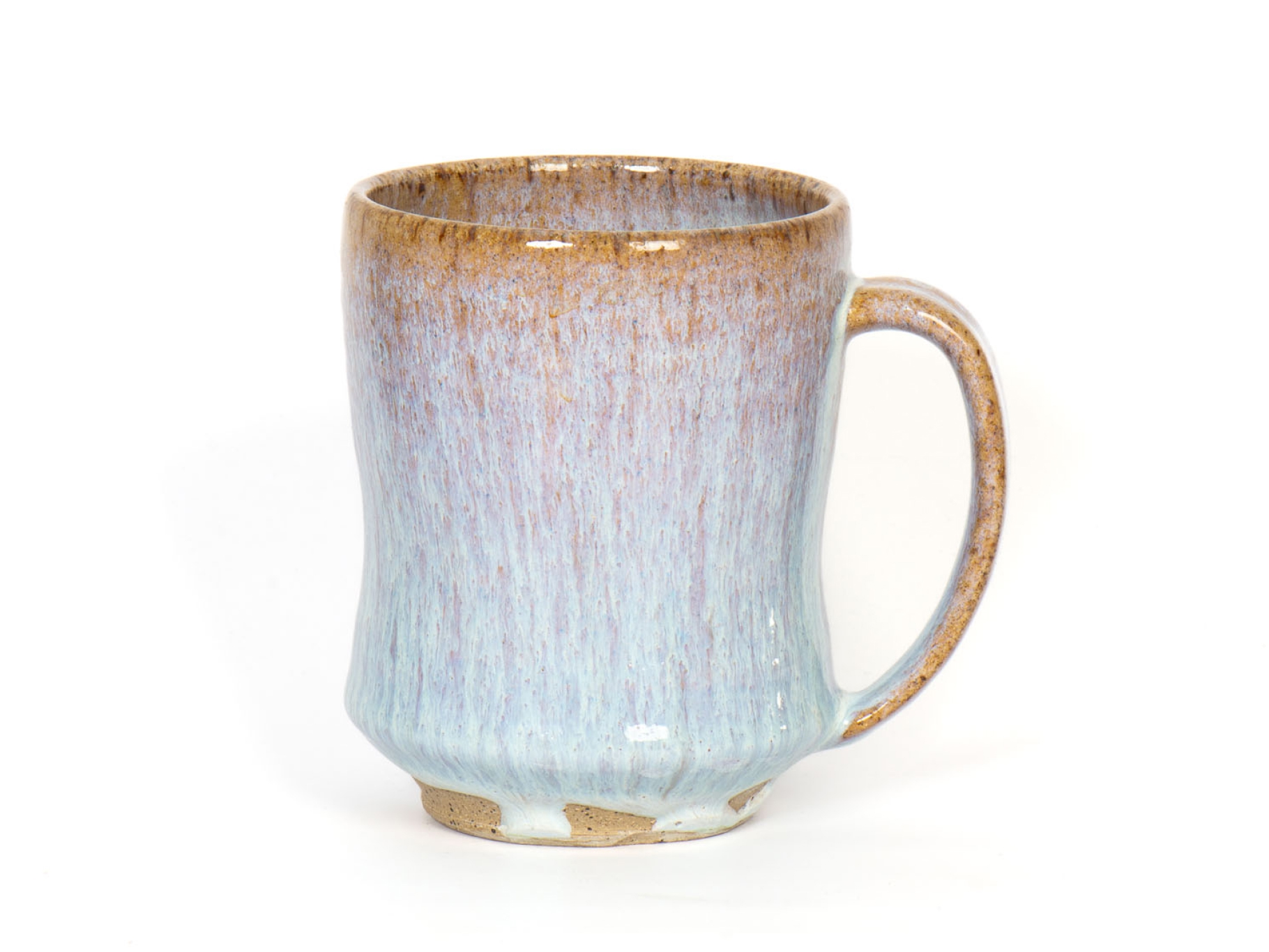 An ample wheel-thrown mug designed for coffee and tea lovers alike. The curved body and thick handle give the form a distinctive silhouette while maintaining a comfortable grip in hand.
