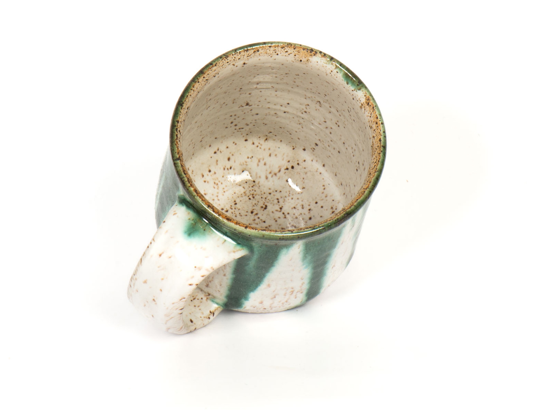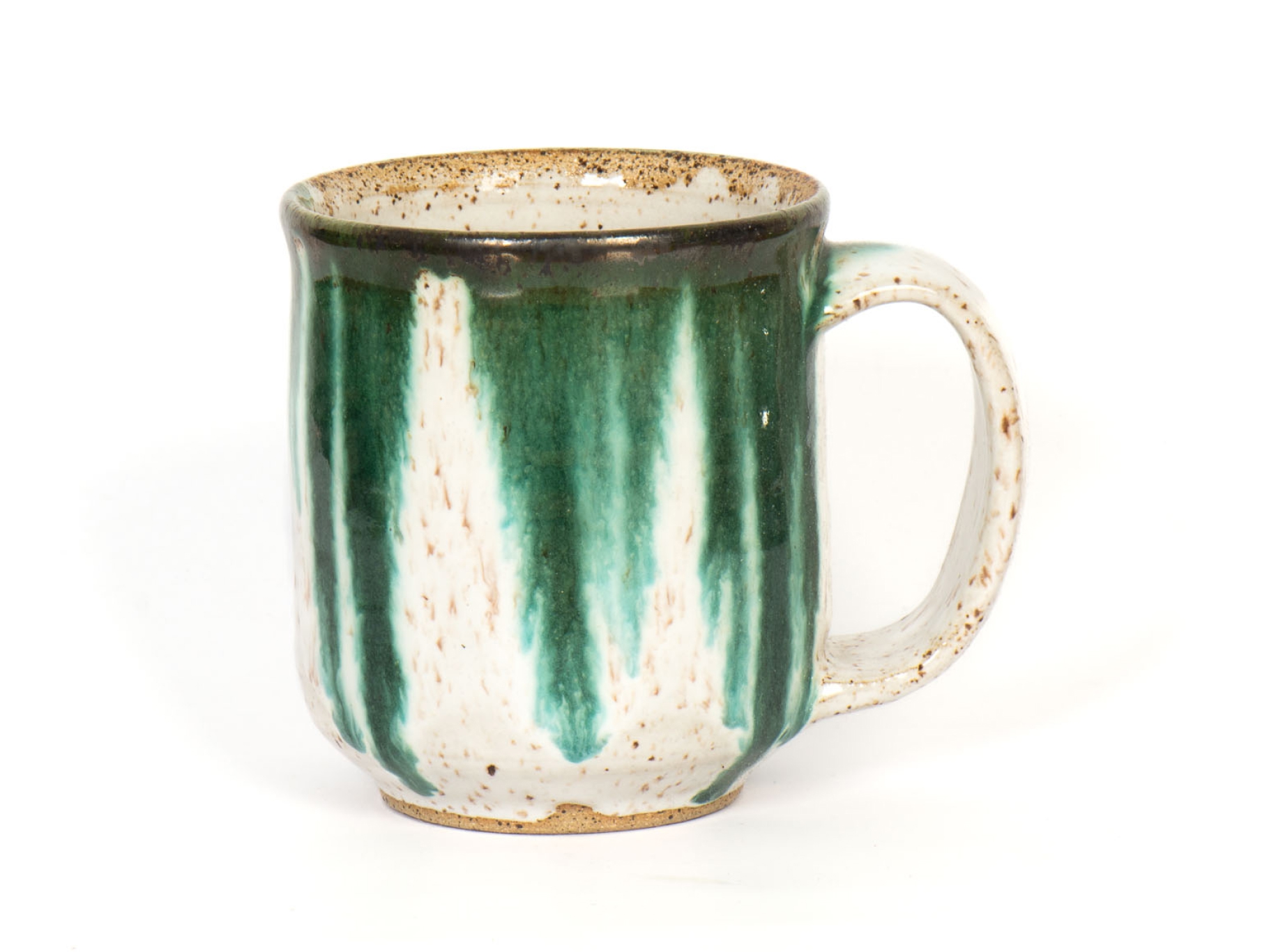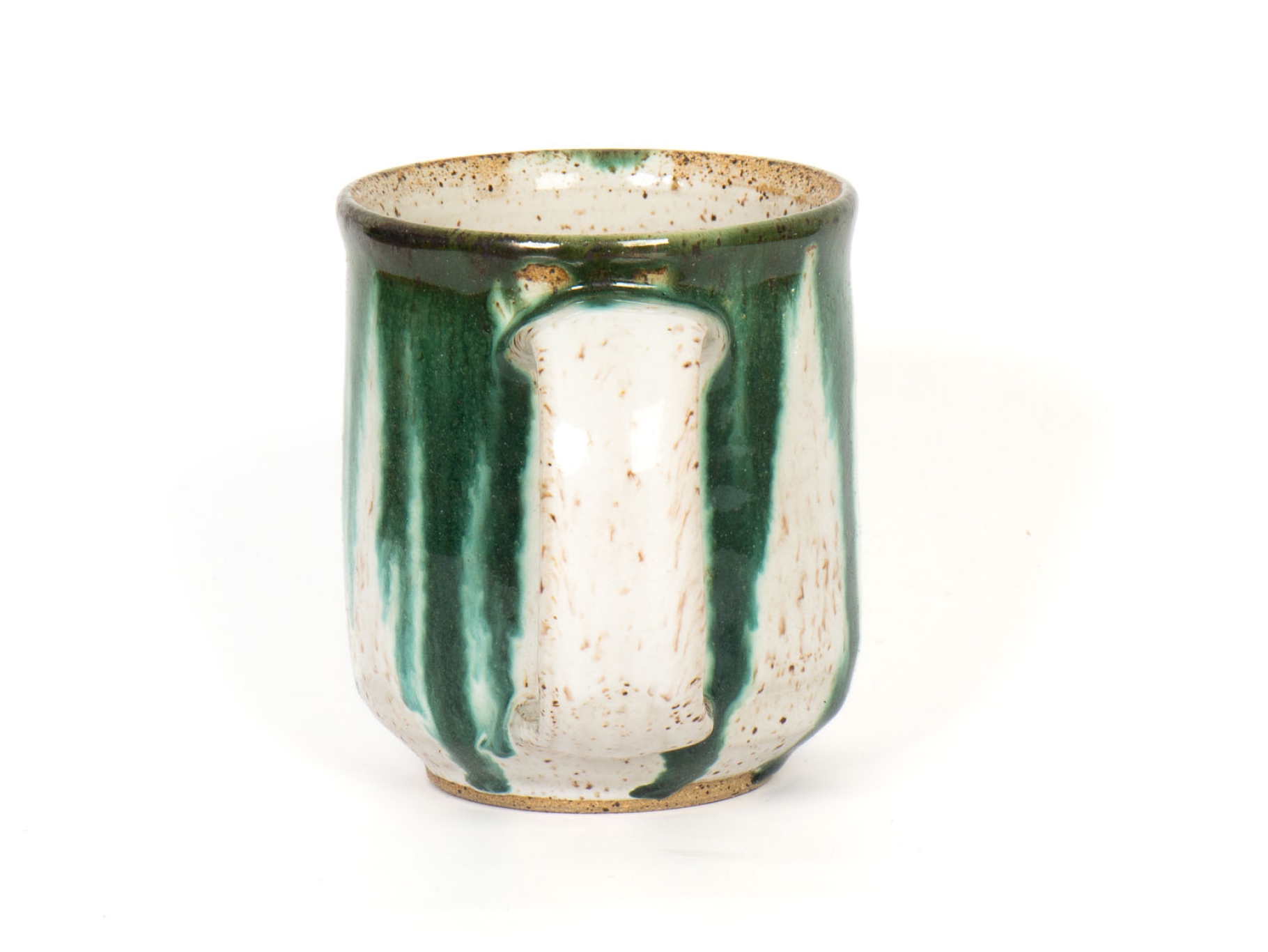 An ample wheel-thrown mug designed for coffee and tea lovers alike. The curved body and thick handle give the form a distinctive silhouette while maintaining a comfortable grip in hand.
