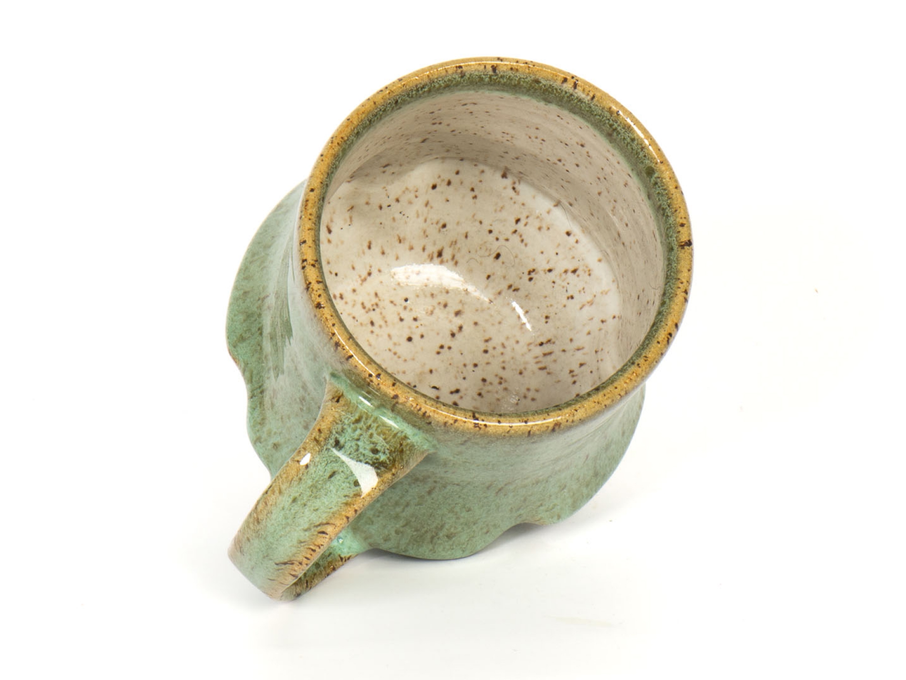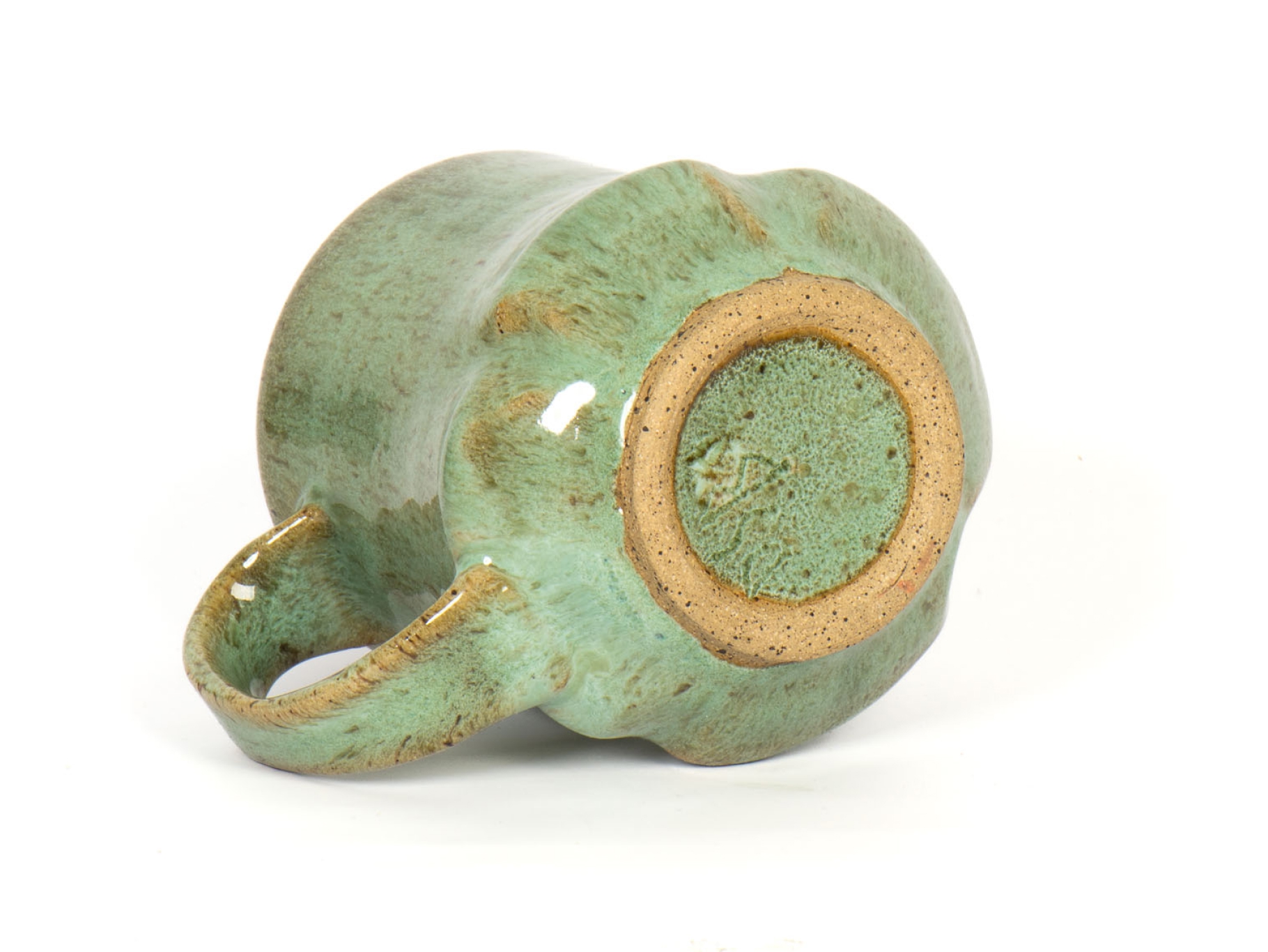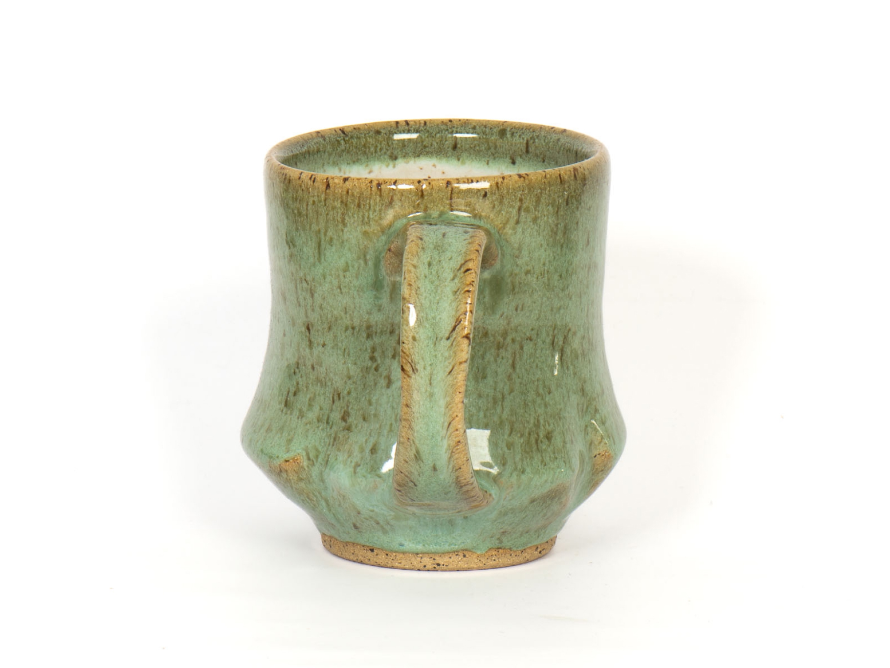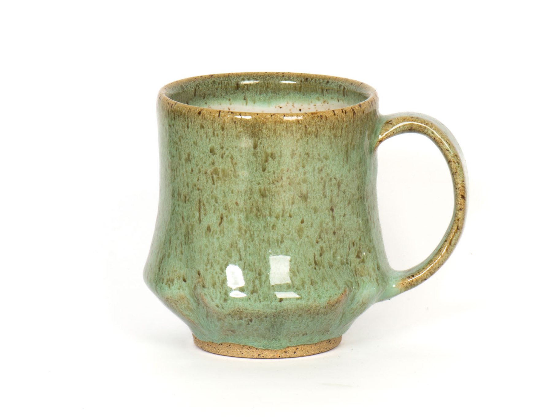 An ample wheel-thrown and altered mug designed for coffee and tea lovers alike. The curved body and thick handle give the form a distinctive silhouette while maintaining a comfortable grip in hand.