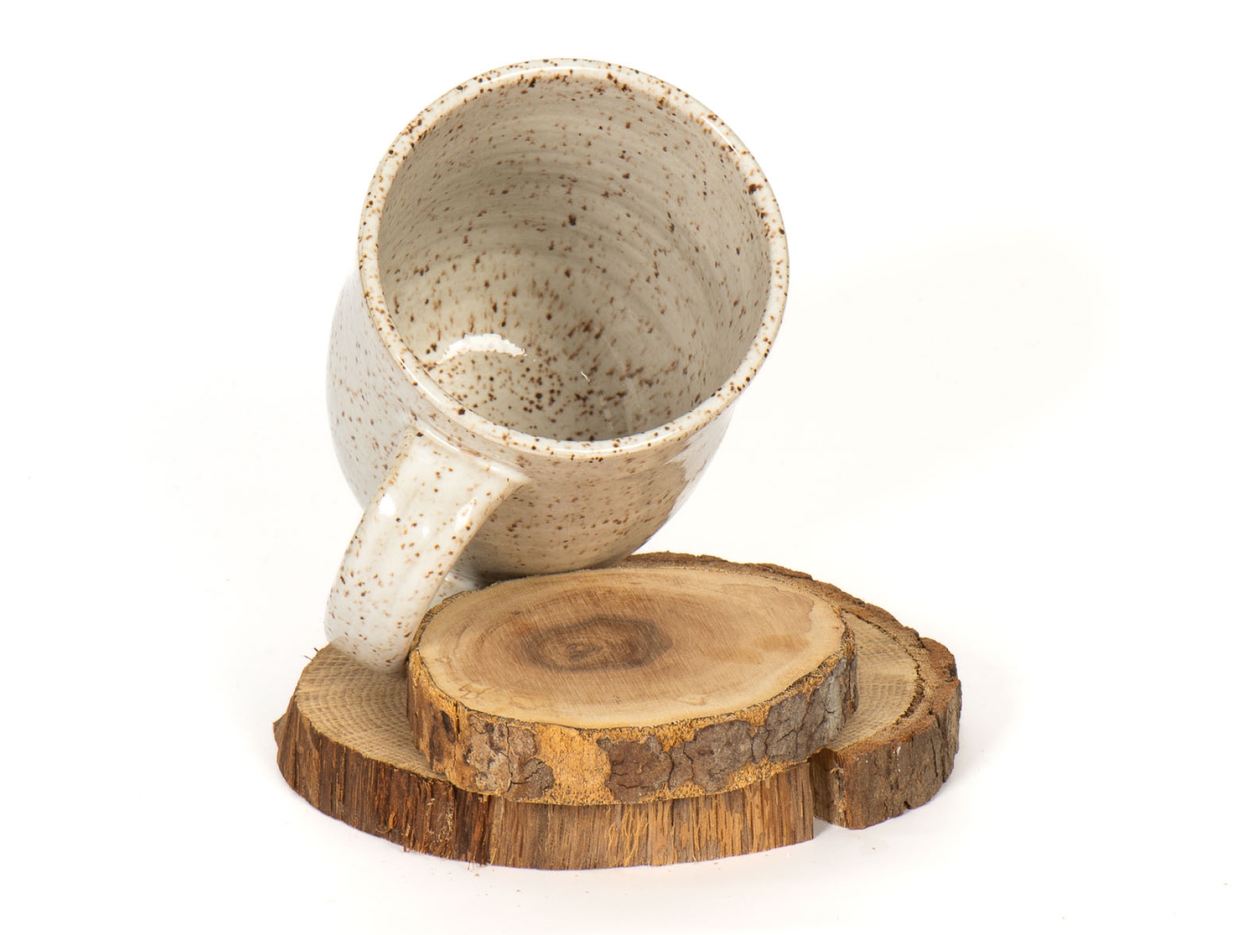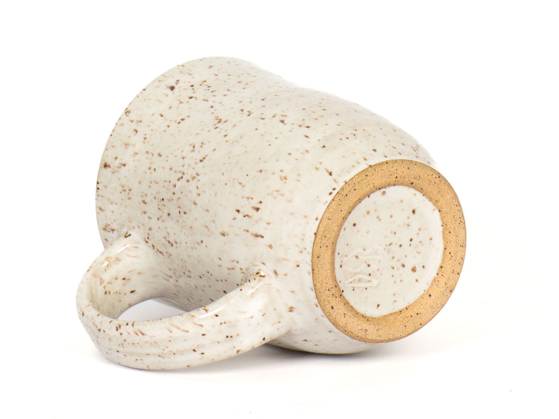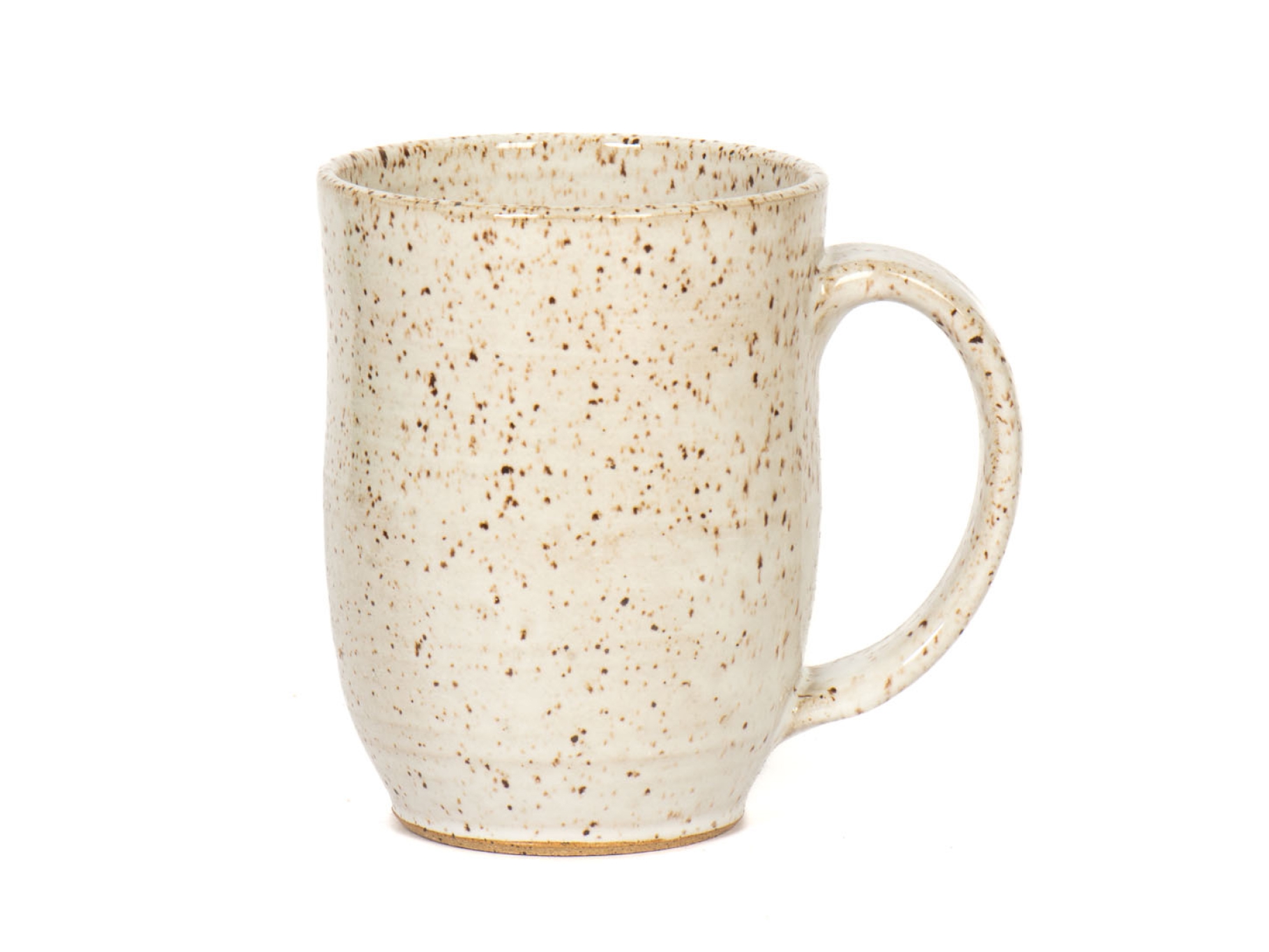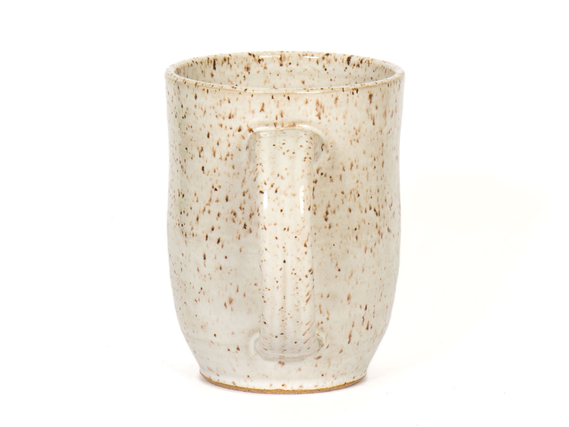 An ample wheel-thrown mug designed for coffee and tea lovers alike. The curved body and thick handle give the form a distinctive silhouette while maintaining a comfortable grip in hand.