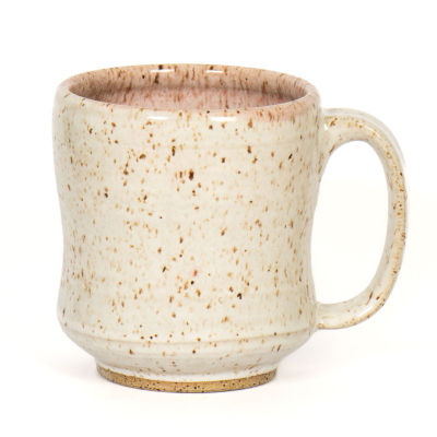 An ample wheel-thrown mug designed for coffee and tea lovers alike. The curved body and thick handle give the form a distinctive silhouette while maintaining a comfortable grip in hand.