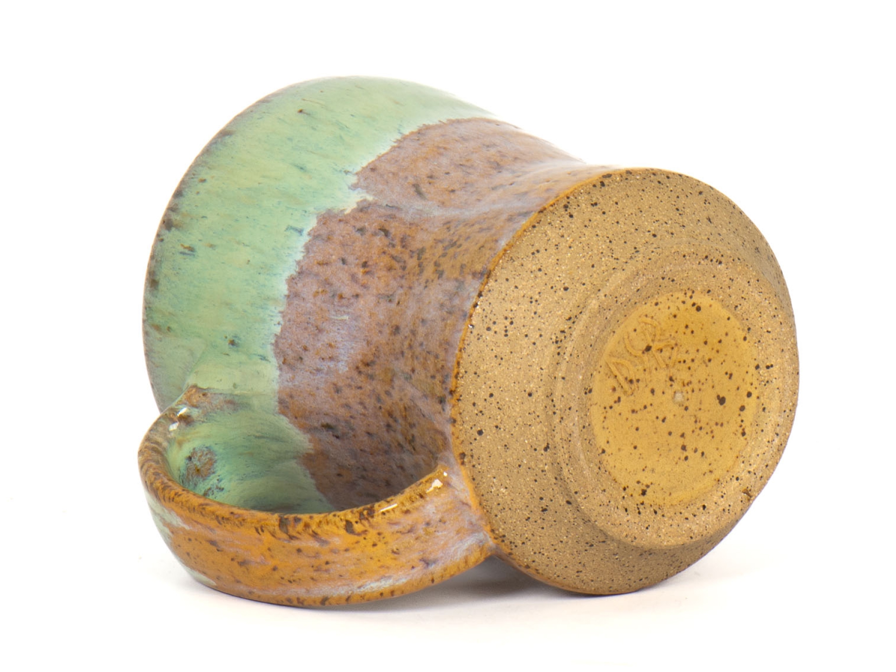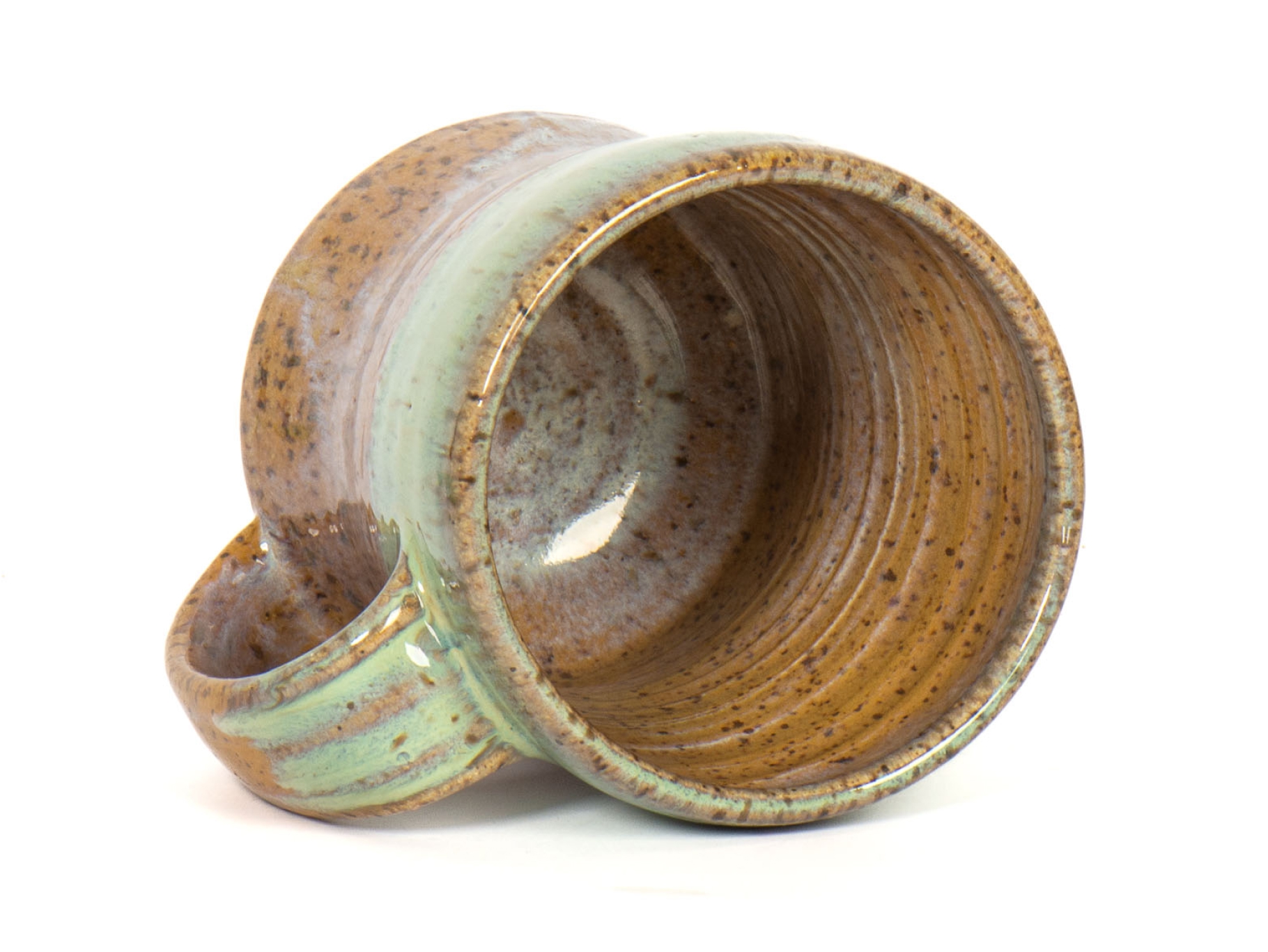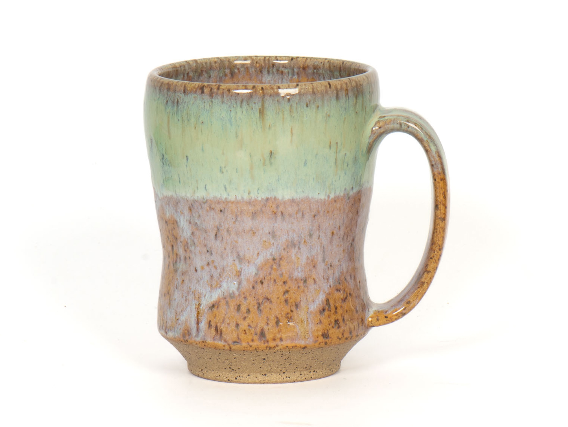 An ample wheel-thrown mug with carvings designed for coffee and tea lovers alike. The curved body and thick handle give the form a distinctive silhouette while maintaining a comfortable grip in hand.