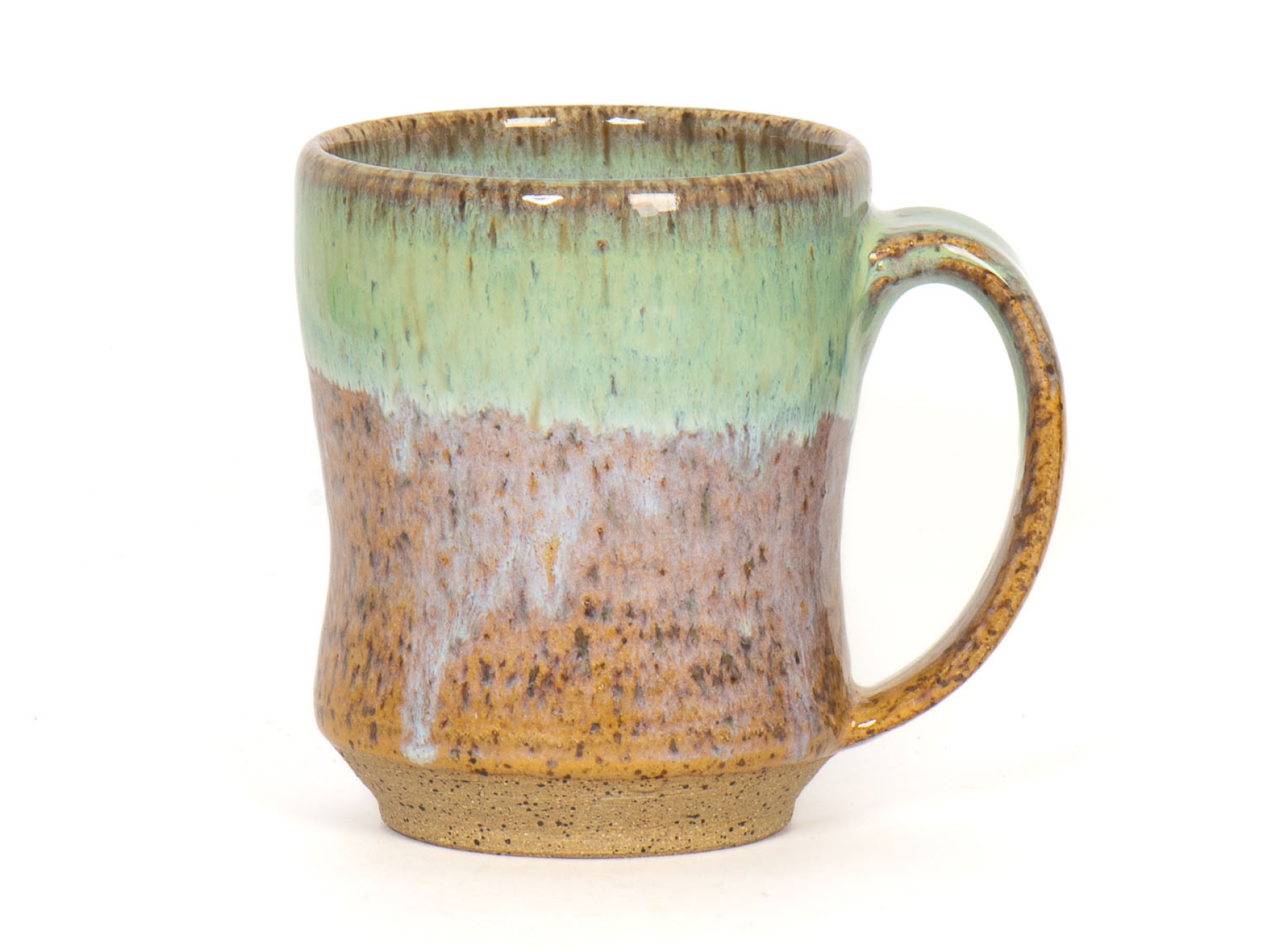 An ample wheel-thrown mug with carvings designed for coffee and tea lovers alike. The curved body and thick handle give the form a distinctive silhouette while maintaining a comfortable grip in hand.