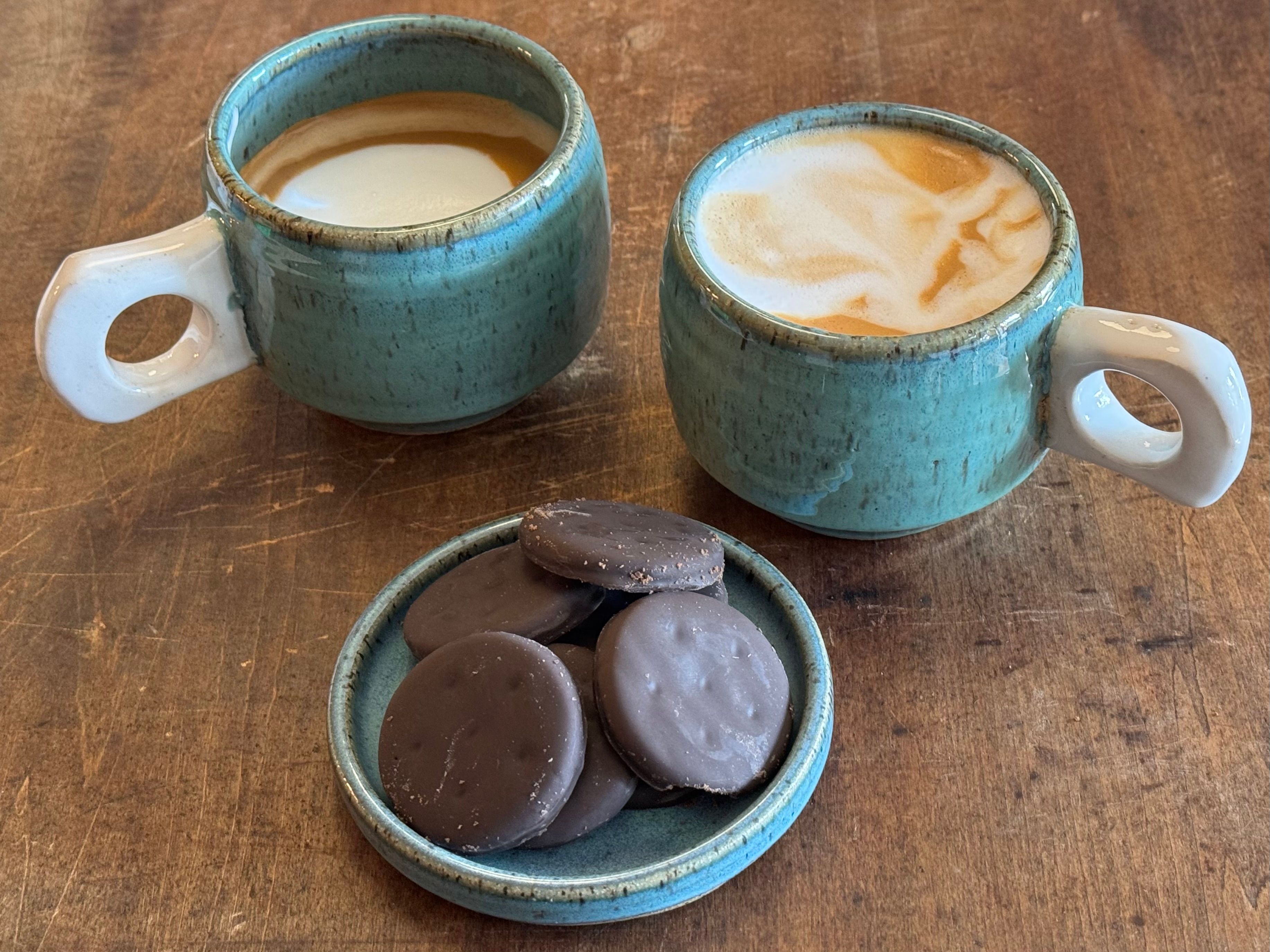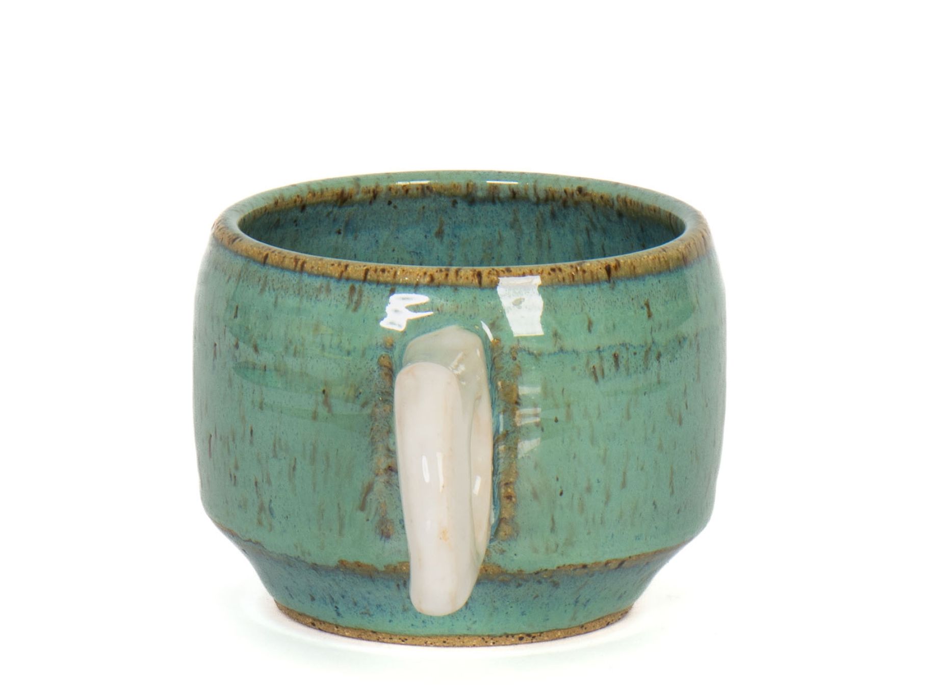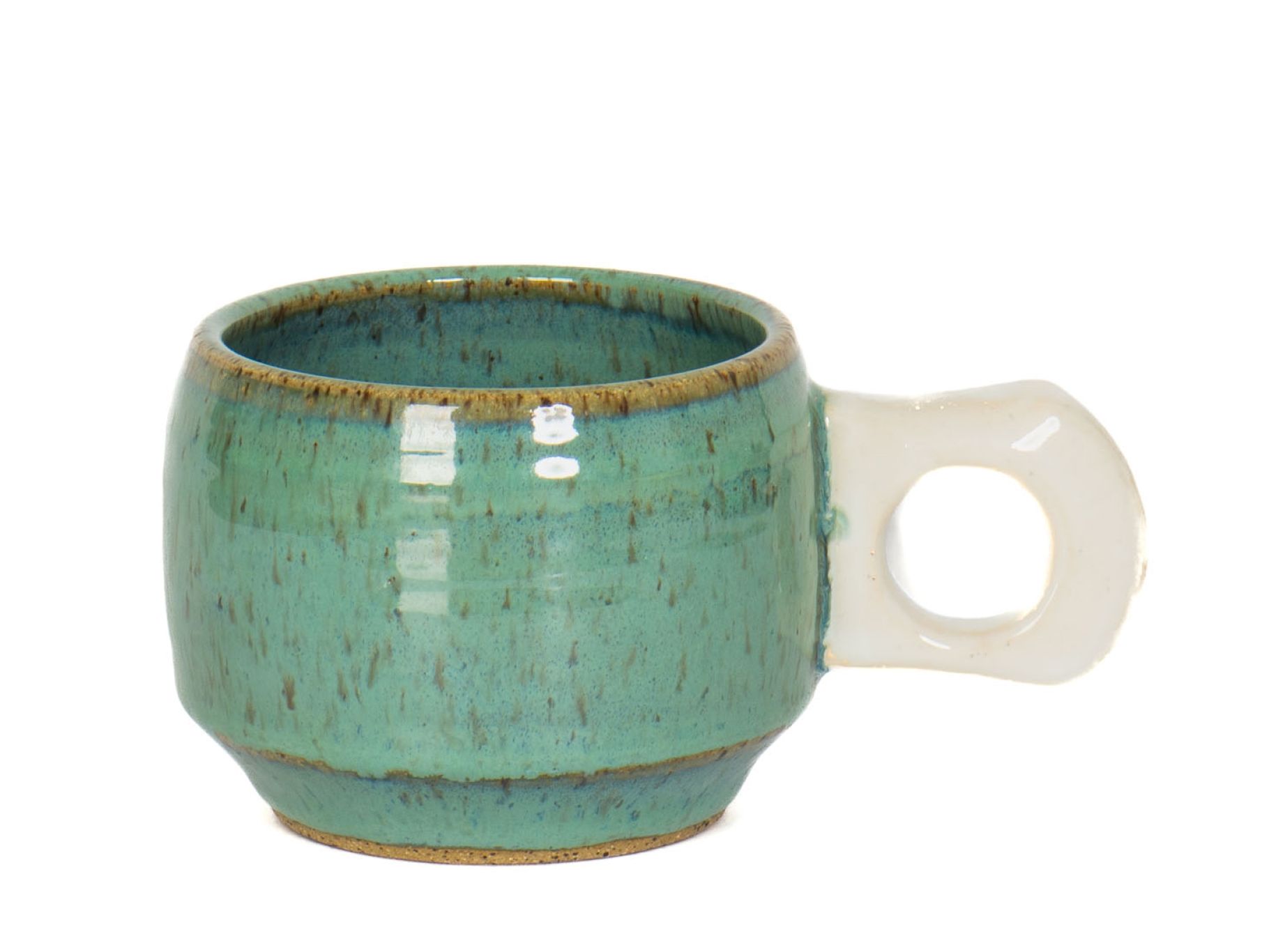 An short wheel-thrown mug designed for coffee and tea lovers alike. The curved body and single finger carved handle give the form a distinctive silhouette while maintaining a comfortable grip in hand. A perfect size for lattes, macchiatos and cortados.